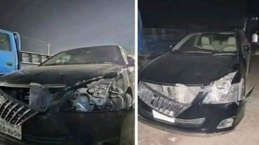 A car in a convoy of vehicles carrying leaders of the anti-discrimination student movement Sargis Alam and Hasnat Abdullah was involved in a collision with a truck when the leaders were on their way back from Chattogram.