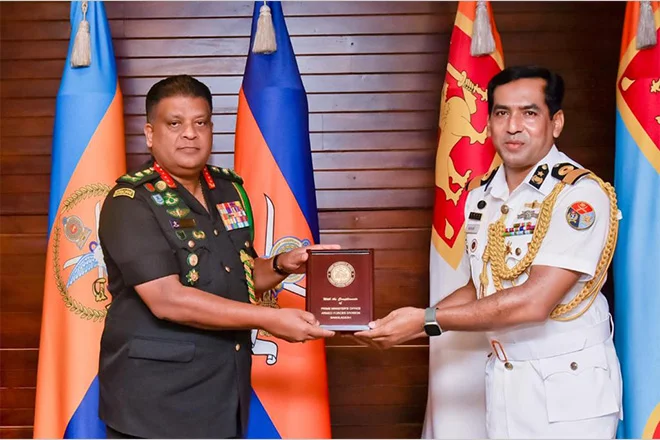 Commodore M Moniruzzaman, in turn, acknowledged the immense respect Bangladesh holds for Sri Lanka's military prowess and expressed his desire to build upon this existing trust. Further, the new DA thanked the CDS for his much valued insights rich with the experience in the field. He also requested the continued assistance and guidance of General Shavendra Silva in discharging his future entrusted tasks. He also emphasized his commitment to working closely with his Sri Lankan counterparts to further solidify bilateral defence ties.