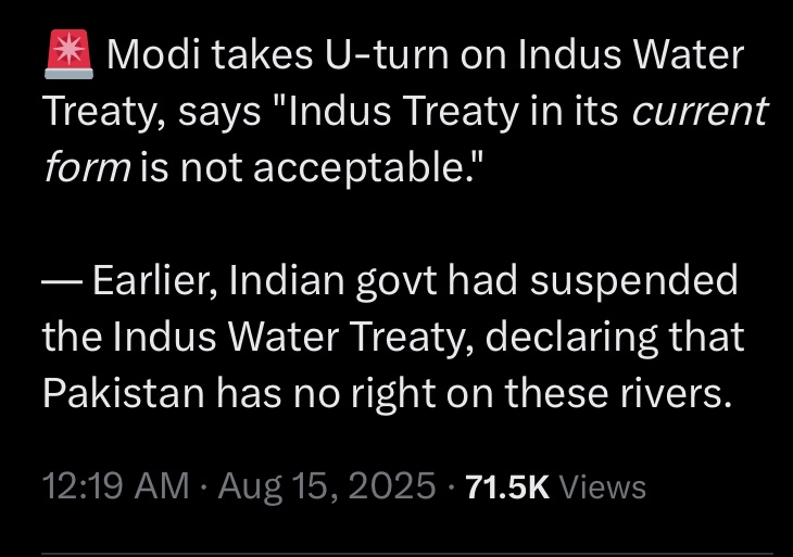 Watch the video. Modi said he will remove the unjust treaty which offers 80% water to aL Bakistan. not the bullshit screenshot you posted.Modi backs done Indus water dam after begging China @Jiangnan @Krishna with Flute @Lulldapull after the US fight and oil tariffs he had to beg ChinaView attachment 21797