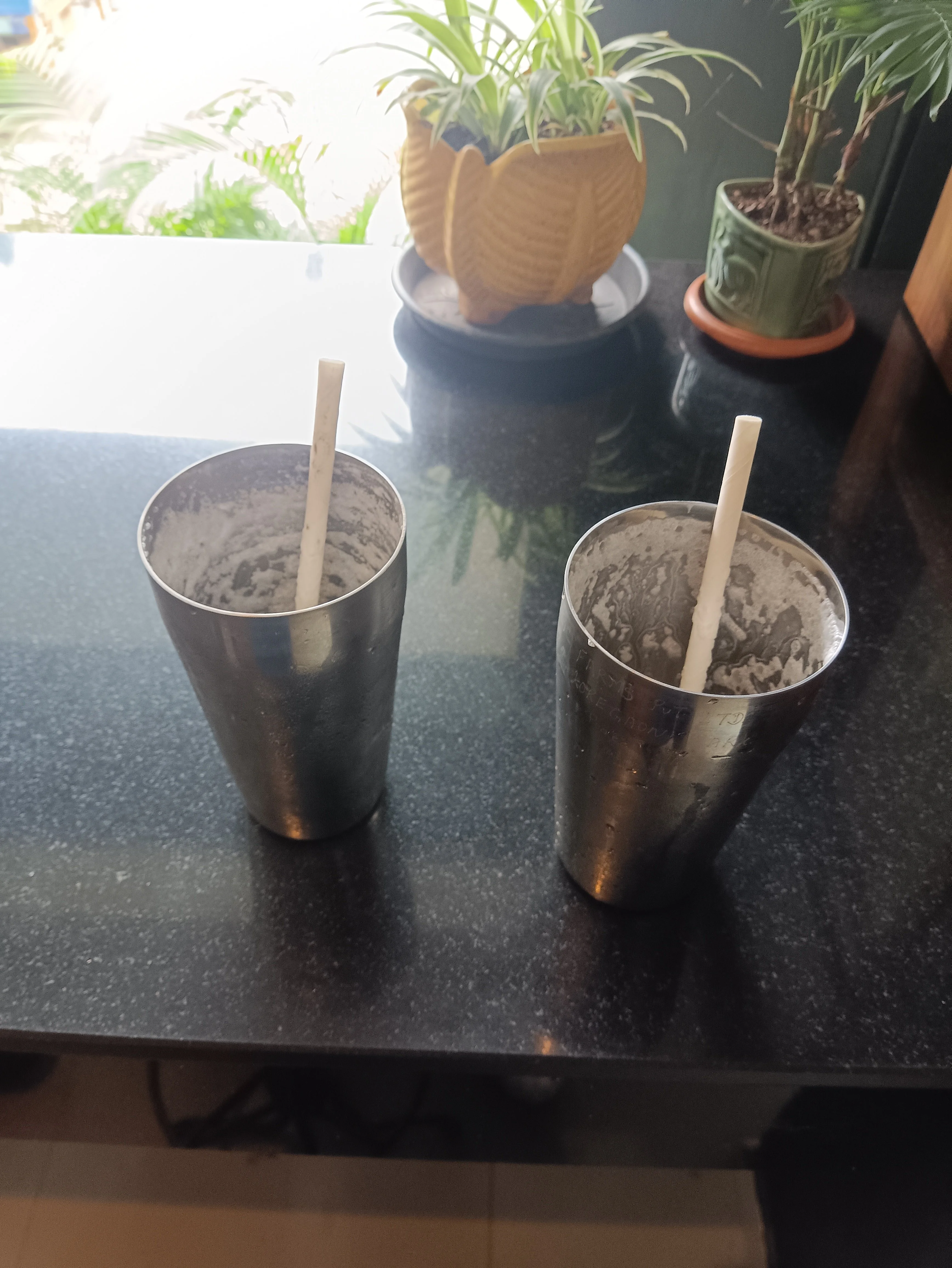 Two half liter (probably more) glasses of chilled lassi.